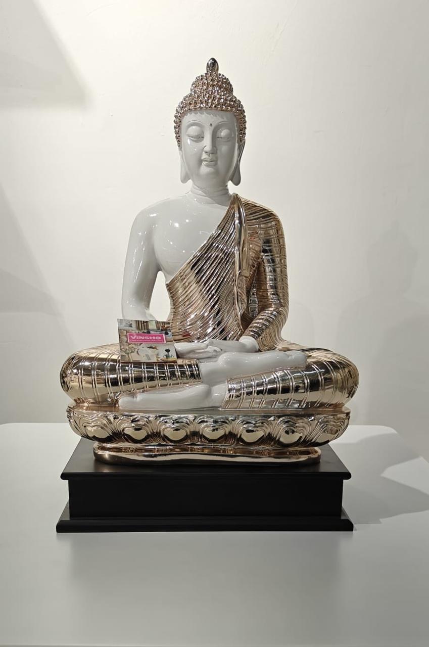 Bring peace and elegance to your space with this beautifully crafted Buddha statue. Featuring a serene expression with a graceful white and gold finish, it symbolizes calm, wisdom, and positivity. Perfect for home décor, meditation spaces, offices, or gifting, this Buddha idol adds a spiritual and luxurious touch to any environment.